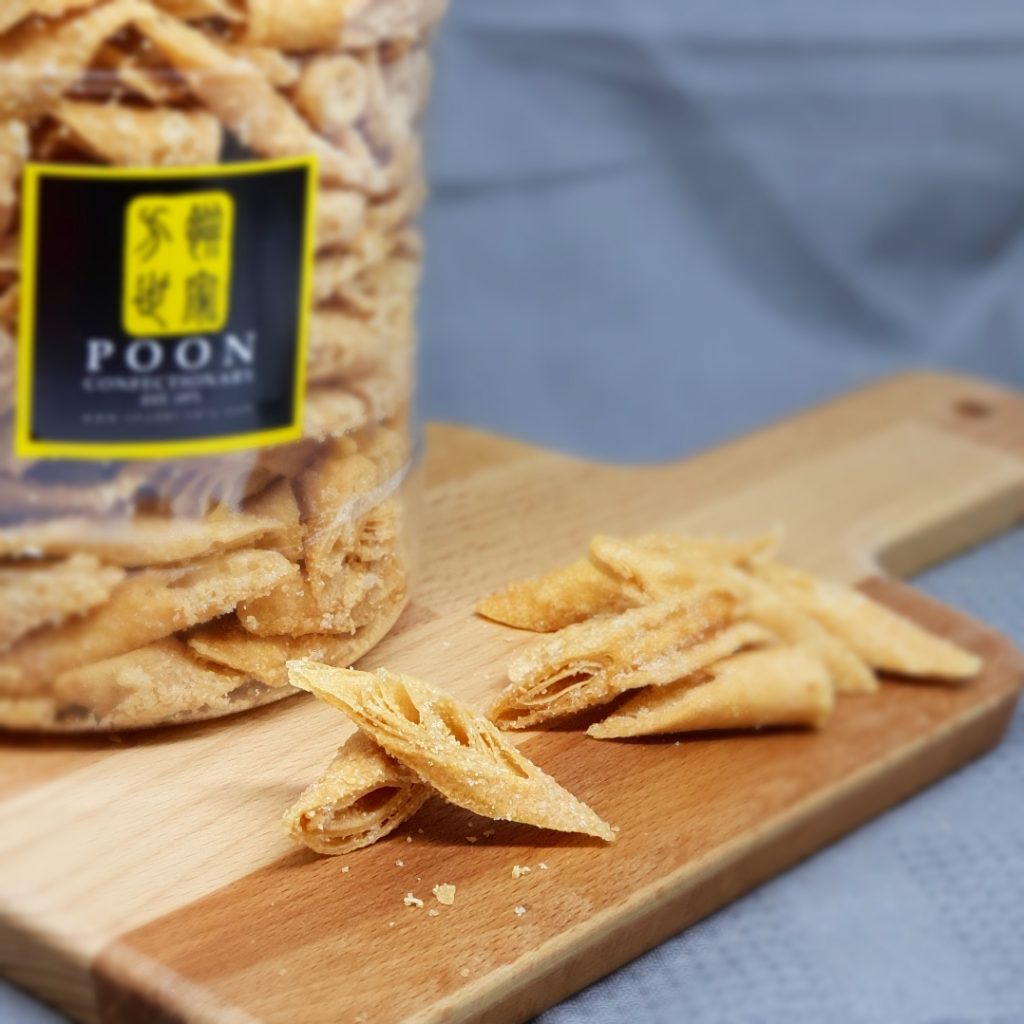 One of the most popular Chinese New Year goodies, these wafers are so named because Lovers used to etch messages into them for their loved ones. The loved ones then proceeded to eat it, first, to destroy the evidence, secondly, to take their lover’s message to heart They are a mainstay in any home celebrating the Chinese New Year. Love letters are a timeless classic snack that appeals to both young and old.
