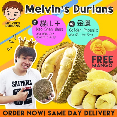 Melvin’s Durian Review   Location 1 Upper Aljunied Lane (located in front of Prime Supermarket) Singapore 360001 Phone +65 8869 0781 Email melvisdurian@gmail.com Facebook https://www.facebook.com/Melvinsdurian/ Instagram https://www.instagram.com/explore/locations/1774429976120011/melvins-durian/?hl=en Business Hours 1:00 PM to 10:00 PM daily   Melvin’s Durian is one of the youngest durian stalls in Singapore. Established on June 5, 2016, we can still consider it to be a relatively new player in the durian industry in Singapore. But despite having only two years of experience, the business is already making a name in the industry because of its excellent customer service and high-quality products. While the store is considered to be a newcomer to the industry, the business owner, Melvin, already has more than 10 years of experience in the durian industry. In fact, he was a co-founder of Ministry of Durian. He sources and imports his products from Muar & Pahang. His stocks are also replenished on a daily basis to ensure that all of their products are consistently fresh. Highlights